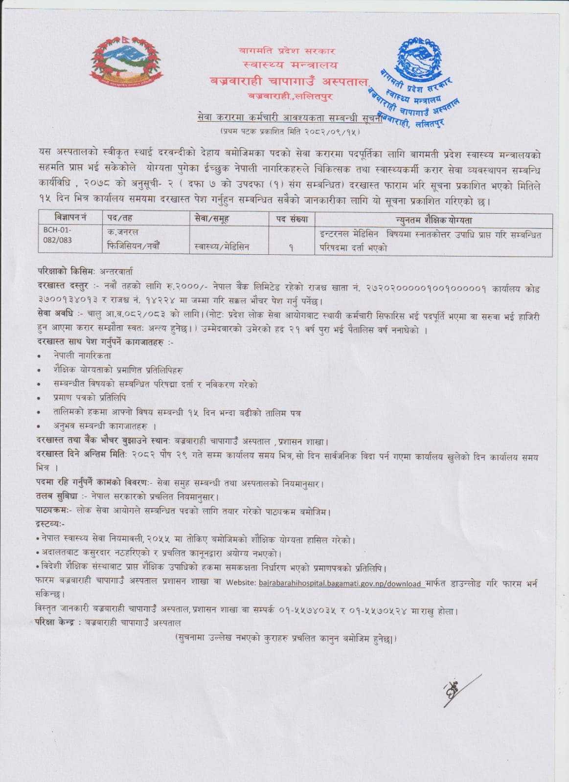 सेवा करारमा कर्मचारी आवश्यकता सम्बन्धी सूचना |